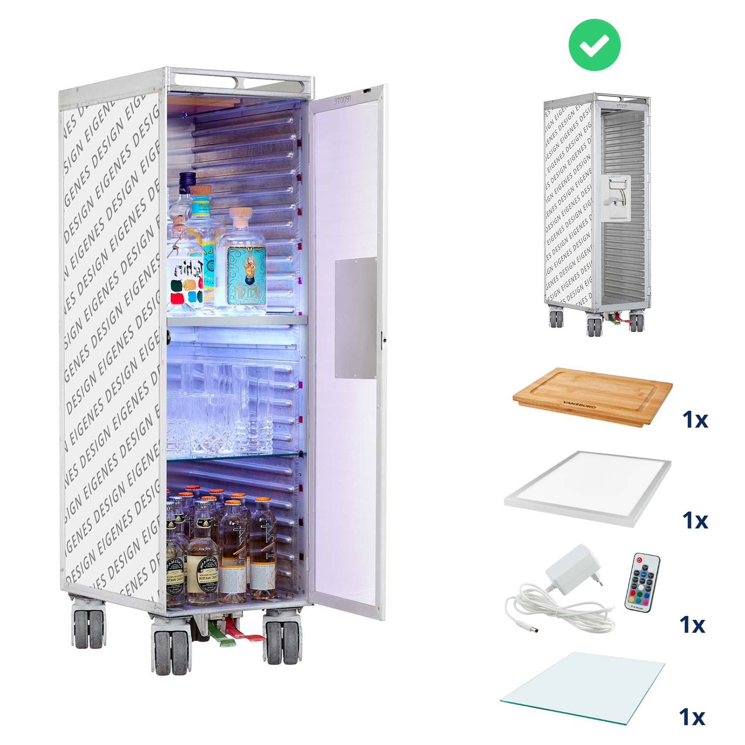 Airline Cart Bar YOUR DESIGN incl. LED Shelf, small Cutting Board & Glass Shelf