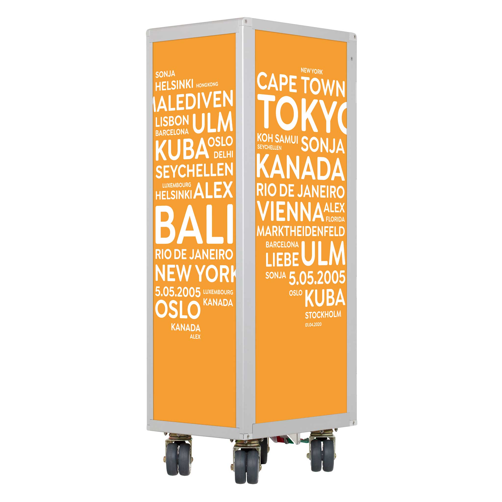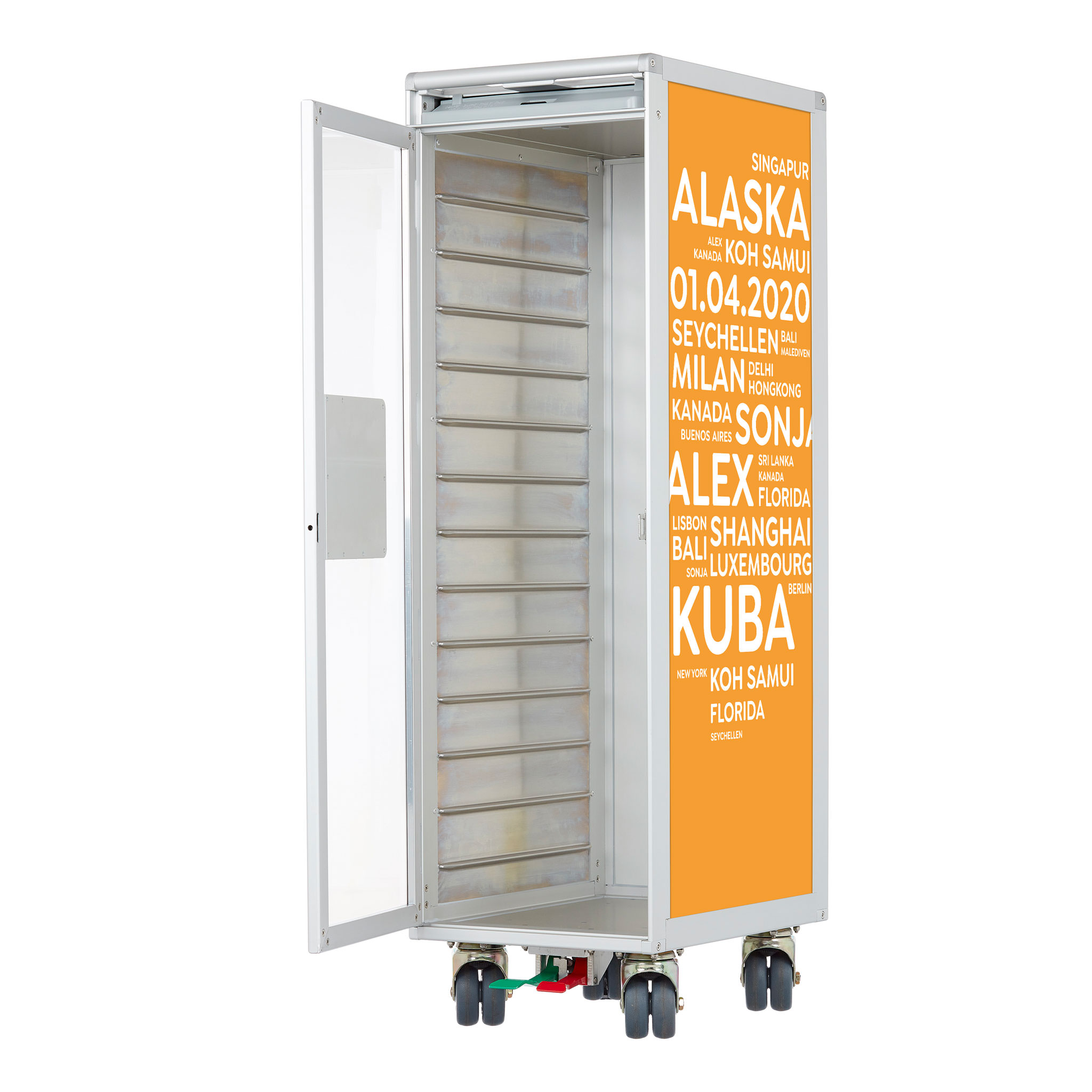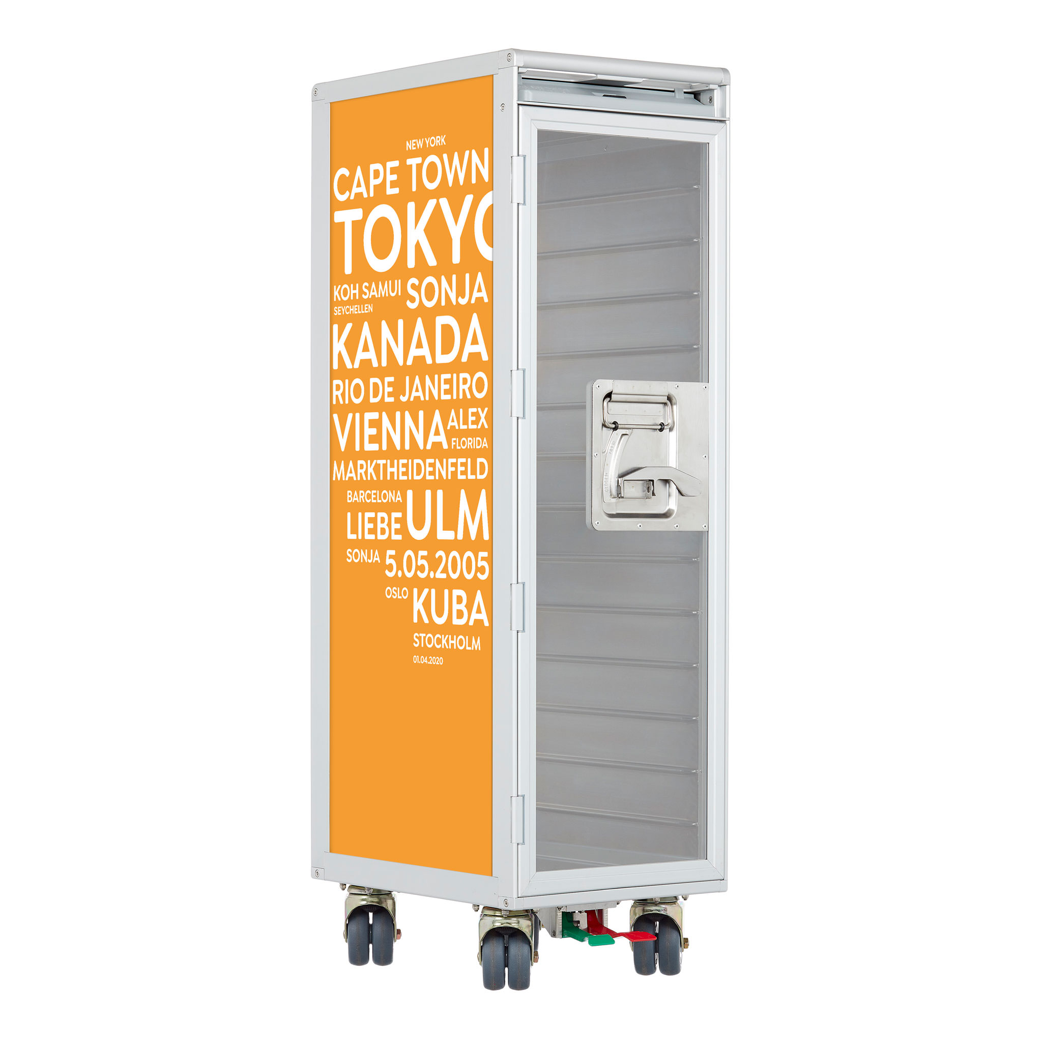 Made for you. Individually designed aircraft trolleys are excluded from the exchange and return policy. We specially manufacture an airplane trolley with your cities/terms for you - as a tailor-made unique item.