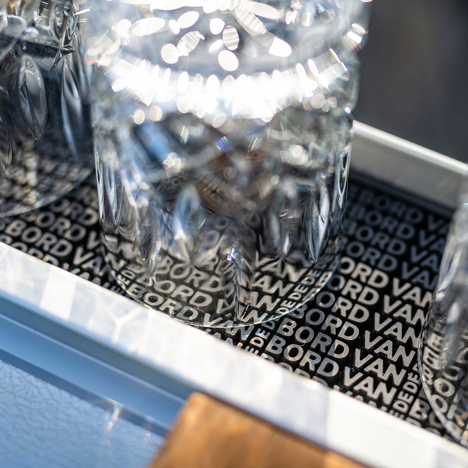 Our bar mats will make the hearts of true bartenders beat faster and definitely enhance the look and function of your Sideboxes. The felt insert transforms your Sidebox into a stylish first-class storage area. This makes the whisper-quiet placement and removal of items a tactile highlight. In daily use, this is extremely practical.