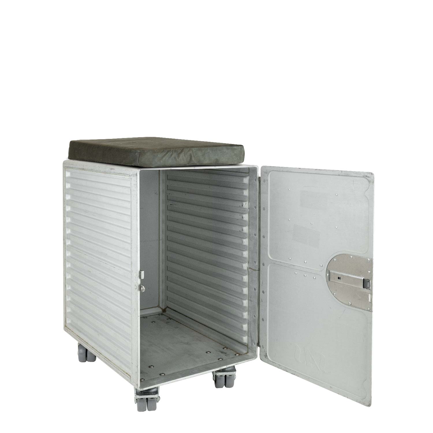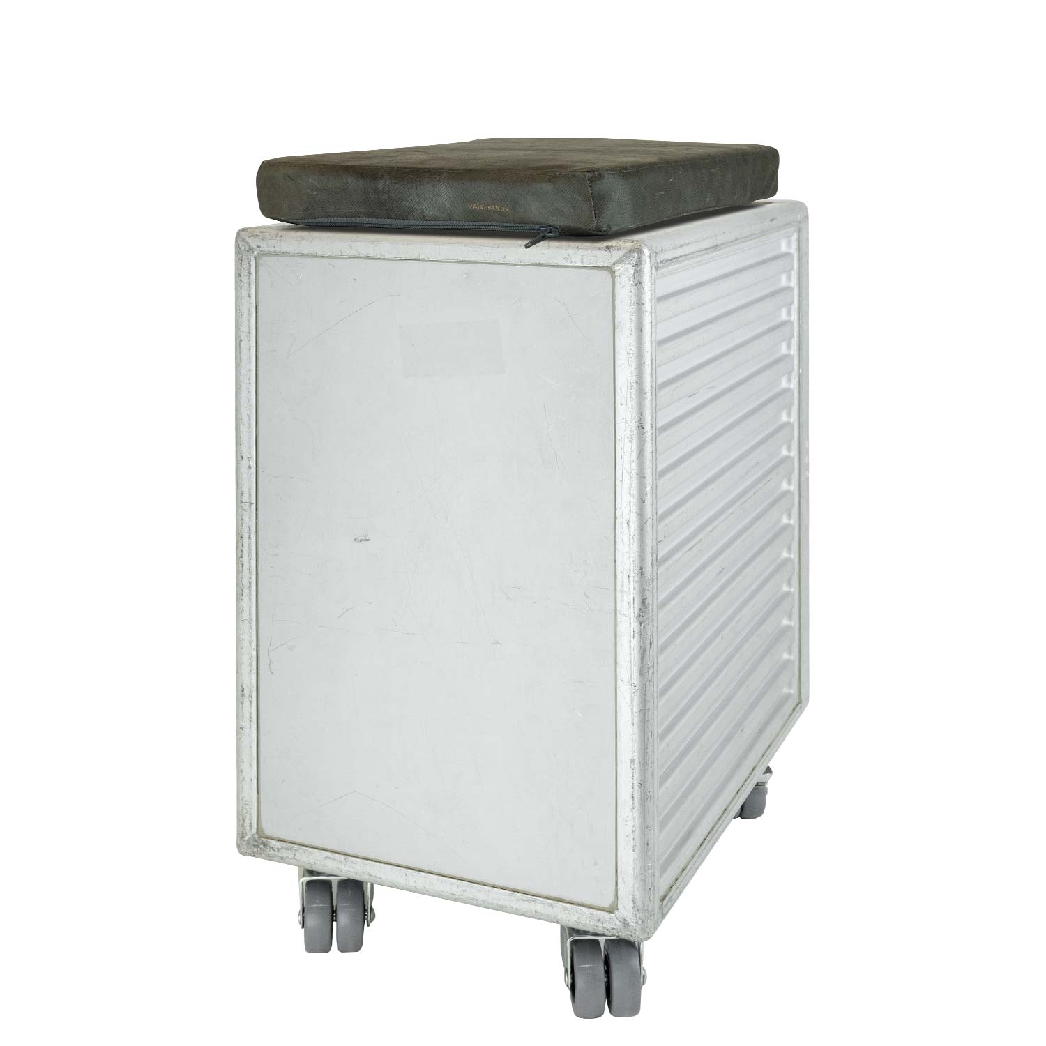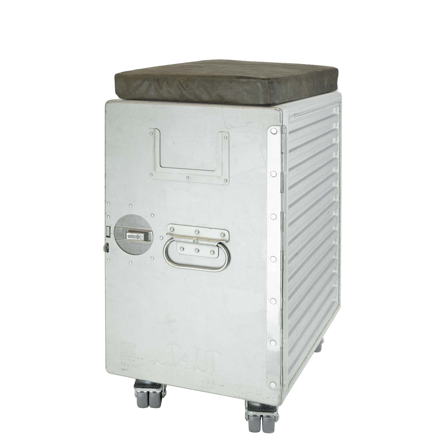 The roomy Aviation Box XL stool has landed at VanDeBord Airport as a valued veteran of Scandinavian Airlines. After countless flight miles, authentic signs of use tell the story of a life filled with adventures and journeys.