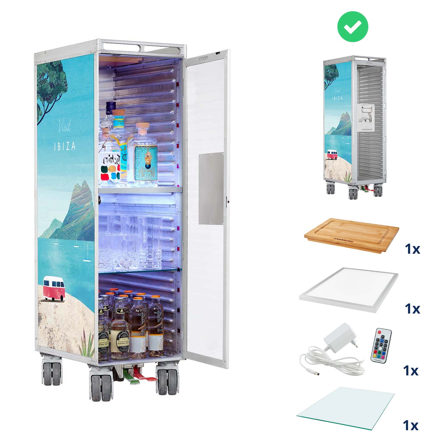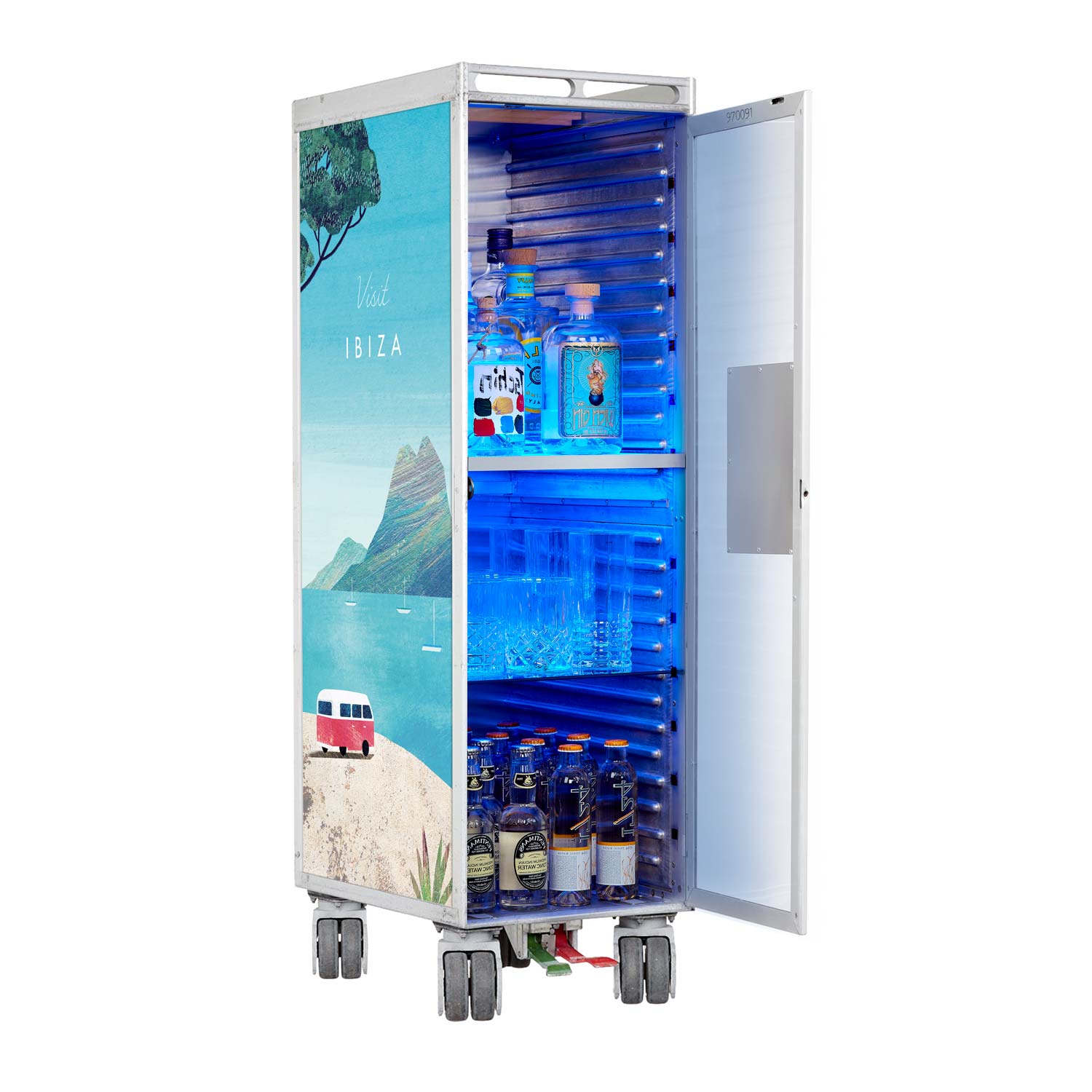 Bartrolley Henry Rivers Edition Visit Ibiza inkl. LED-Leuchtfachboden, Barbrett & Fachboden aus Glas