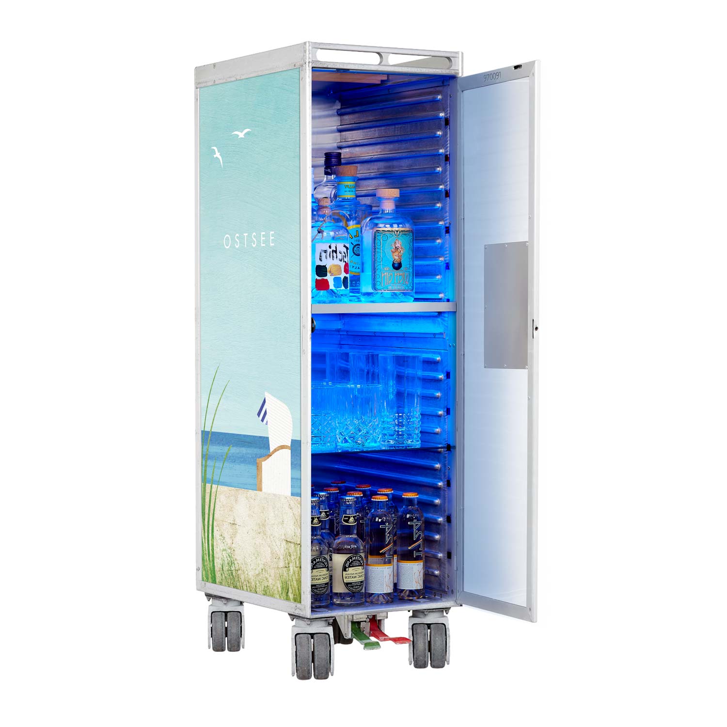 Bartrolley Henry Rivers Edition Visit Ostsee inkl. LED-Leuchtfachboden, Barbrett & Fachboden aus Glas