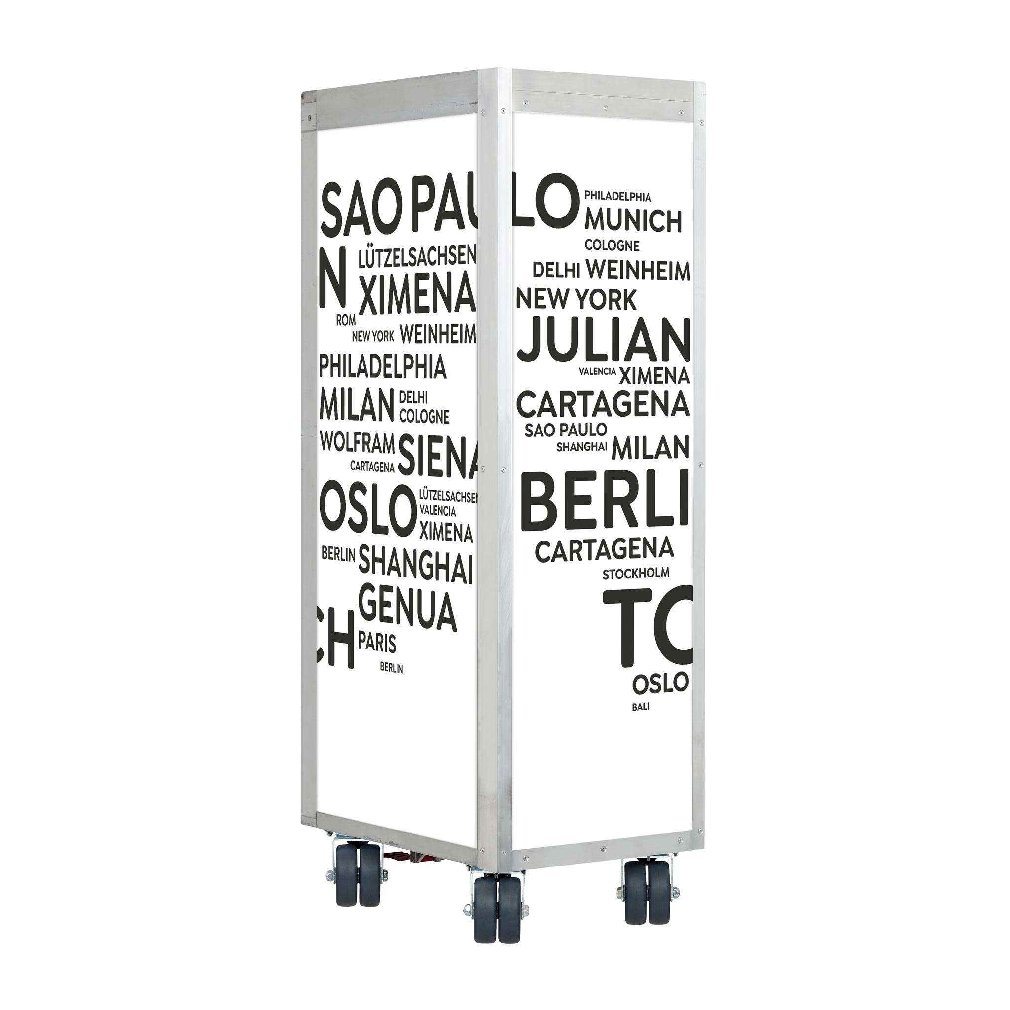 Dieser Flugzeugtrolley trägt Deine ganz persönliche Handschrift. Du wählst die Städte und Begriffe für das City Design aus und wir übernehmen alles Weitere. Ob Haupt-, Klein- oder Geburtsstadt, Hochzeits- oder Geburtsdatum, Lieblingsmusik, Spitznamen oder Meilensteine - wir designen nach Deinen Vorgaben Dein individuelles City Design.