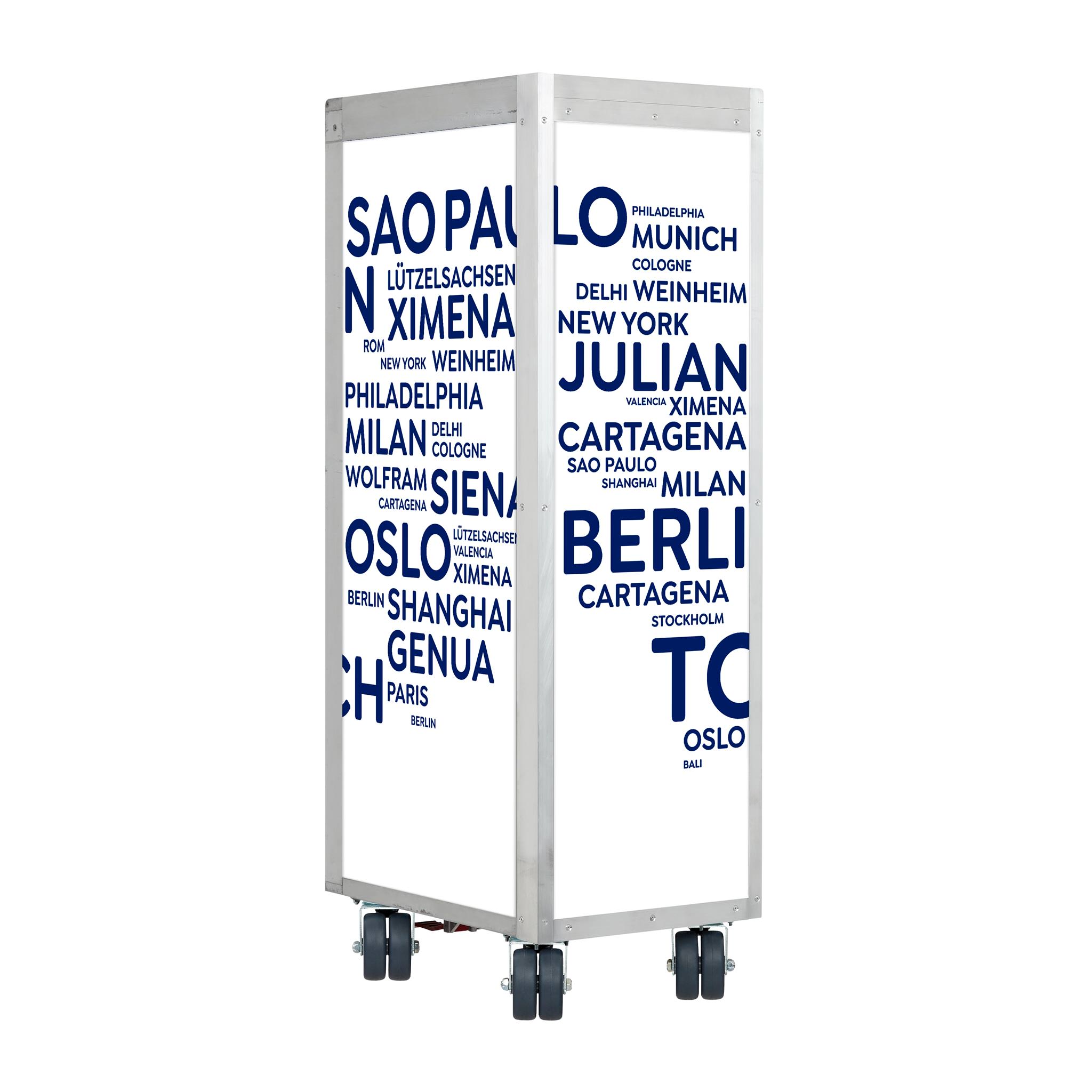 Dieser Flugzeugtrolley trägt Deine ganz persönliche Handschrift. Du wählst die Städte und Begriffe für das City Design aus und wir übernehmen alles Weitere. Ob Haupt-, Klein- oder Geburtsstadt, Hochzeits- oder Geburtsdatum, Lieblingsmusik, Spitznamen oder Meilensteine - wir designen nach Deinen Vorgaben Dein individuelles City Design.