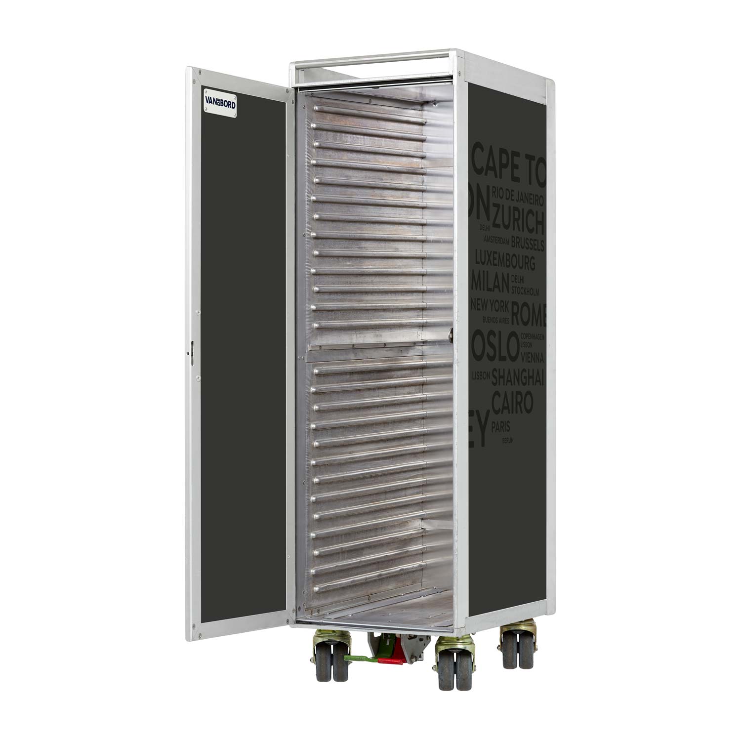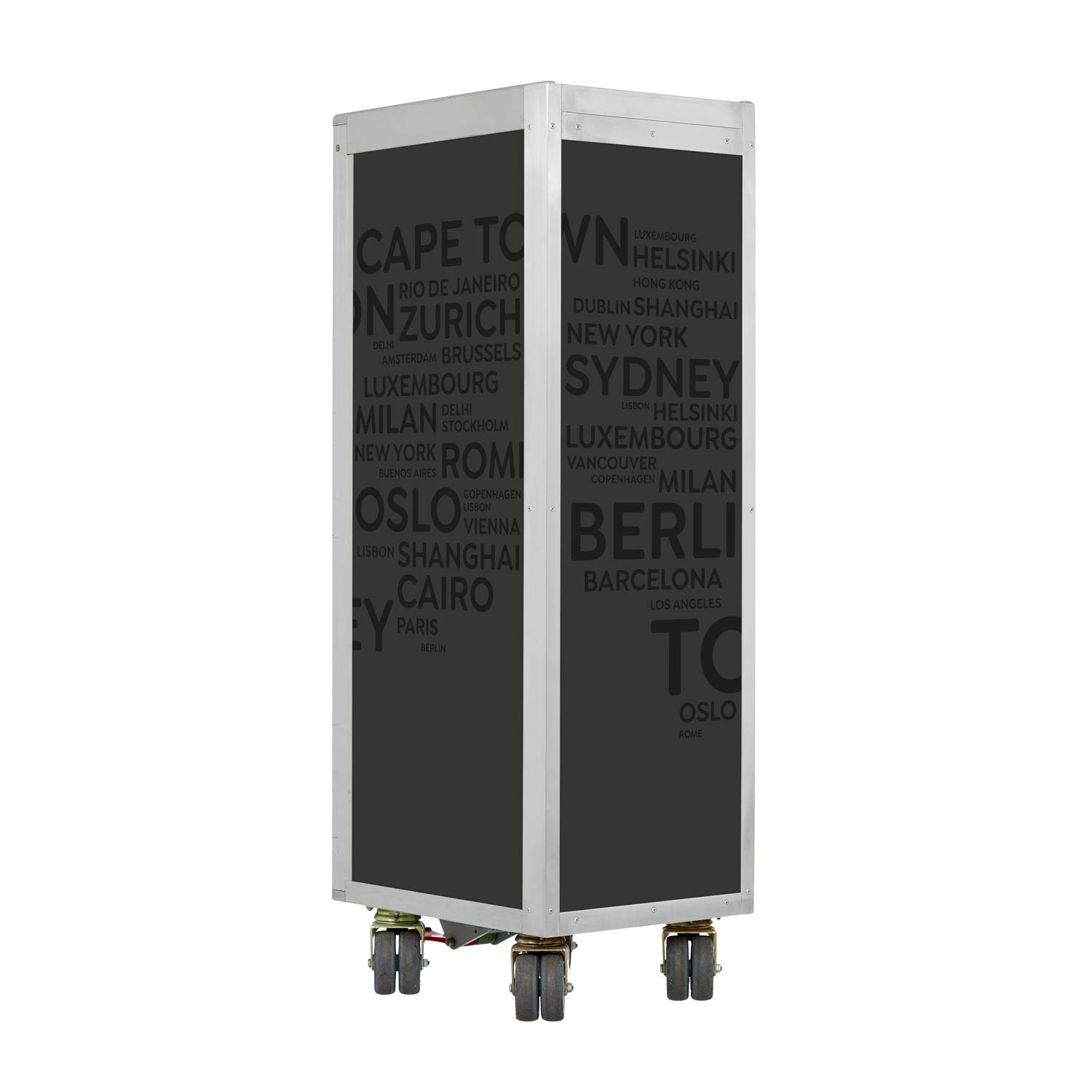 Restaurierte Trolleys sind gebrauchte Flugzeugtrolleys, die in einem aufwändigen Verfahren generalüberholt werden. Wie genau? Dafür bringen wir für Dich alles in Bewegung: Seitenflächen sowie Türseiten erhalten von uns neue hochwertige Aluminium-Panels. Auf Wunsch setzen wir Acrylglas in die Tür ein. Direkt danach bringen wir das Design an den Flugzeugtrolley, entweder durch Laminieren, im Direktdruckverfahren oder als hochwertige Pulverbeschichtung. Die Original-Patina im Aluminiumrahmen, an Schloss, Rollen und Innenseiten bleibt davon unberührt. Einfach himmlisch, oder?