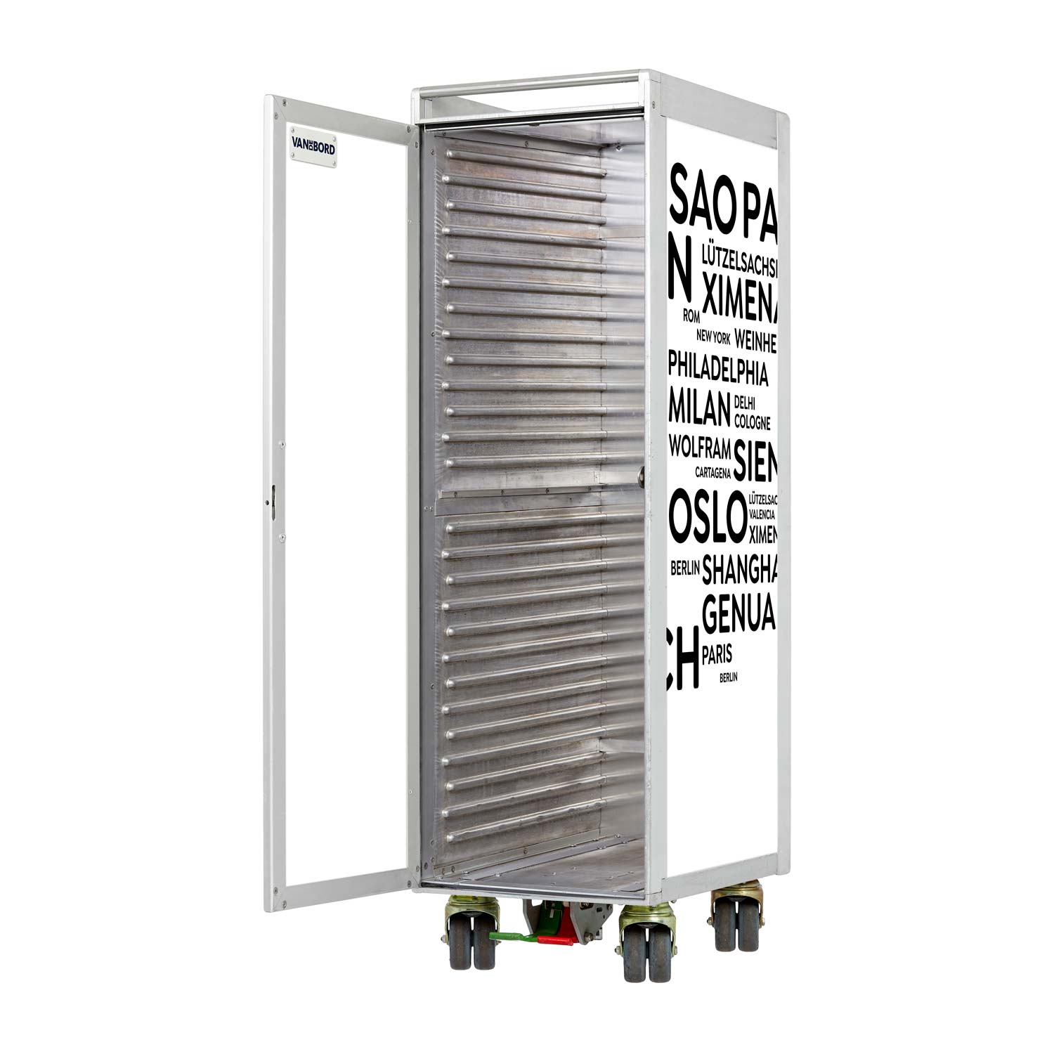 Restaurierte Trolleys sind gebrauchte Flugzeugtrolleys, die in einem aufwändigen Verfahren generalüberholt werden. Wie genau? Dafür bringen wir für Dich alles in Bewegung: Seitenflächen sowie Türseiten erhalten von uns neue hochwertige Aluminium-Panels. Auf Wunsch setzen wir Acrylglas in die Tür ein. Direkt danach bringen wir das Design an den Flugzeugtrolley, entweder durch Laminieren, im Direktdruckverfahren oder als hochwertige Pulverbeschichtung. Die Original-Patina im Aluminiumrahmen, an Schloss, Rollen und Innenseiten bleibt davon unberührt. Einfach himmlisch, oder?